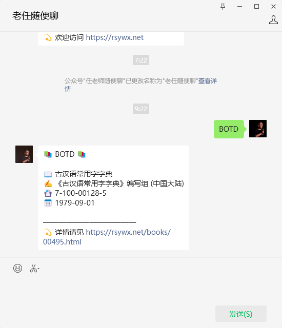 进入我的微信订阅号(“老任随便聊”),输入这些激活词,就能获得相应的反馈。如下就是一个BOTD的反馈: